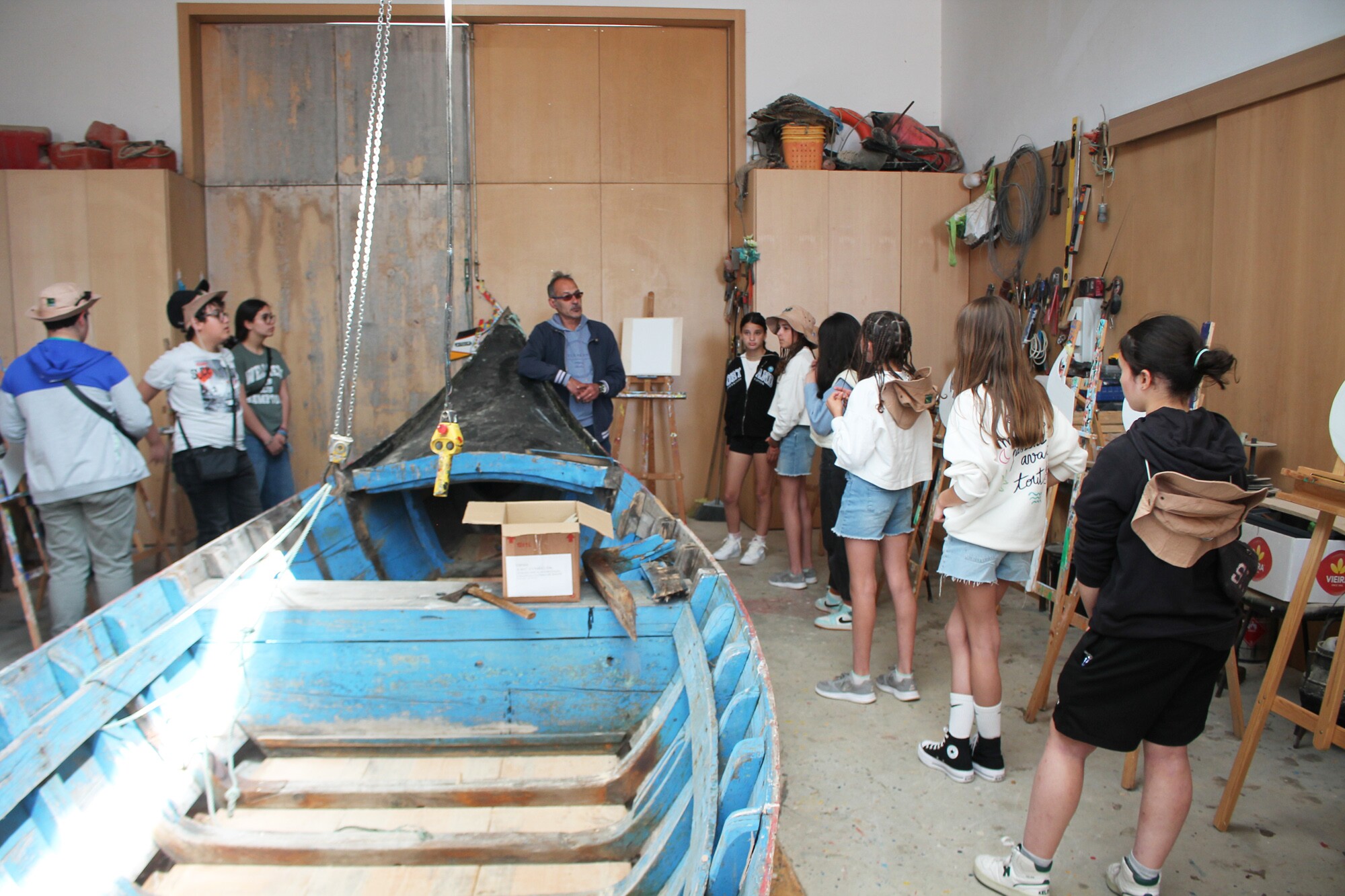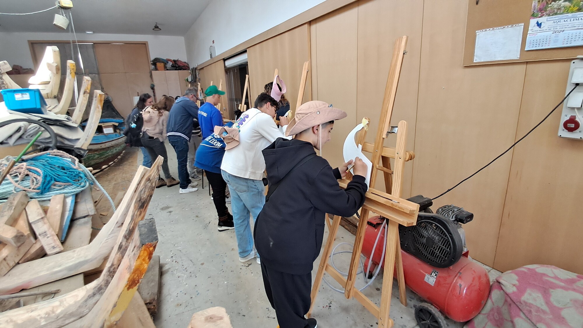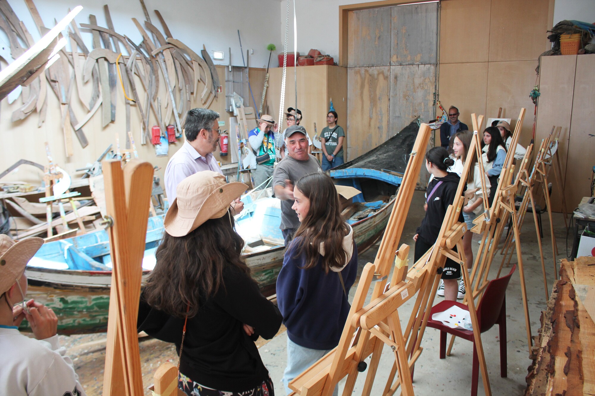 O Estaleiro-Museu do Monte Branco, na Torreira, recebeu ontem um grupo de 17 alunos do Agrupamento de Escolas de Pardilhó que visitaram o museu e participaram numa atividade de pintura de proas com o Mestre José de Oliveira.