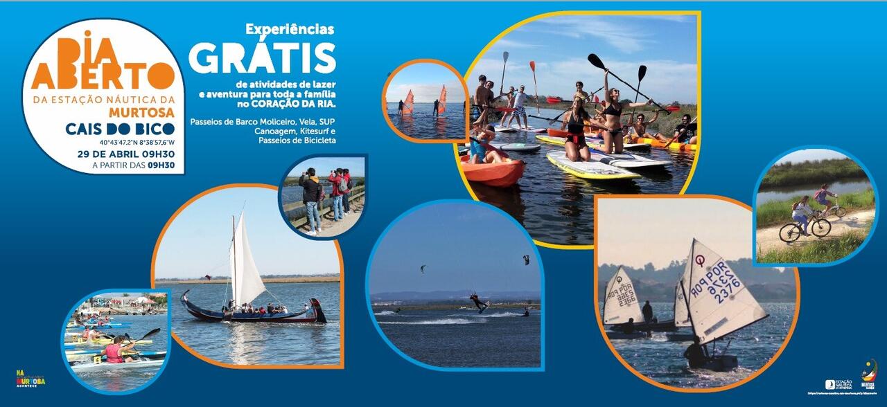 O Cais do Bico, na Murtosa, recebe, no sábado, dia 29 de abril, o Dia Aberto da Estação Náutica da Murtosa, que reunirá, naquele espaço emblemático do concelho, os vários parceiros da estação, que proporcionarão, gratuitamente, um conjunto de experiências de desporto, lazer e aventura, mostrando o enorme potencial da Coração da Ria, enquanto destino privilegiado de turismo náutico de qualidade.